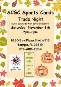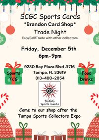 SCGC Sports Cards/Brandon Card Shop – Brandon, FL’s Trusted Sports Card & Collectible Shop. Discover SCGC Sports Cards, your local hub for sports cards, Pokémon, and trading card collectibles in Brandon, Florida and the Brandon Area. We buy, sell, and trade all types of cards — including Topps, Panini, Upper Deck, and Pokémon — with new inventory arriving weekly. Stop by for live breaks, trade nights, and exclusive in-store events that bring collectors together. Whether you’re chasing your favorite players, grading cards, or just getting started, our friendly team is here to help. Visit SCGC Sports Cards today — Brandon’s best sports card shop for collectors, investors, and fans alike. 📍 Conveniently located in Brandon, FL.